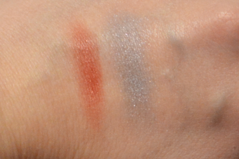 Make-Up Storen tuotteet maksoivat molemmat 9€/kpl ja tuo punertavansävyinen on poskipuna väriltään Flower ja Toinen on luomiväri väriltään Nightclub. Poskipuna on oikeasti paljon kaunimman värinen, kuin miltä kuvassa näyttää. Se on enemmän punainen kuin oranssi. Nightclubia pyörittelin kädessäni jo ennen joulua, mutta en jaksanut jäädä jonottamaan jouluruuhkaan kun ei ollut muuta ostettavaa, joten jätin sen odottelemaan vielä. Tässä swatchit molemmista: