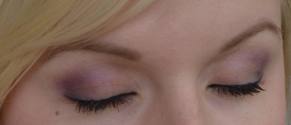Tottakai halusin luomiinikin kokeilla, mutta epätoivo iski kun silmät alkoivat näyttää siltä, että joku olisi nyrkillä silmäkulmaan motannut. Tunkasin ulkonurkkaan vähän mustaakin, mutta sekään ei auttanut. Luomiväri ei häivyttynyt nätisti. Totesin että ainakin tuo Artdecon luomivärinpohjuste saa lähteä ja hankin tilalle jonkun toisen. Kuitenkin kun sain meikin muuten valmiiksi, keksin vielä lisätä tummempaa luomiväriä vähän pidemmälle luomea ylöspäin ja jotain tapahtui, meikki ei enää näyttänytkään niin kamalalta. Se oli helpotus, en ollutkaan menettänyt meikkaustaitoani ihan kokonaan. Tässä kuvaa lopputuloksesta: