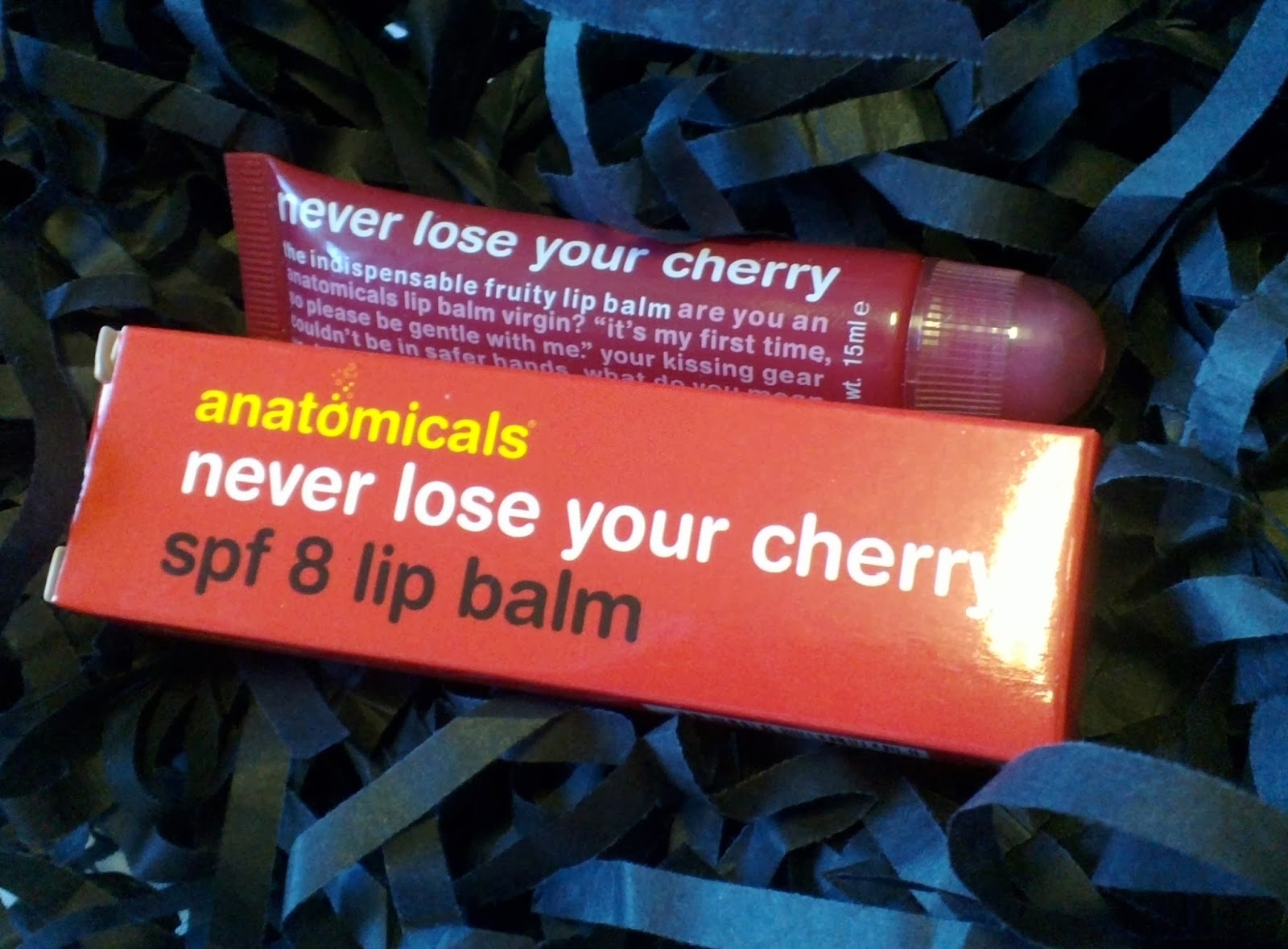Anatomicalsin huulivoide, jossa suojakerroin 8. Kirsikantuoksuinen. Koostumus on ihan kuin huulirasvaa, mutta jälki näyttää vähän huulikiillolle. TYKKÄÄN! (Kirsikan tuoksusta en yleensä tykkää, mutta tässä se ei ole häiritsevä ollenkaan.