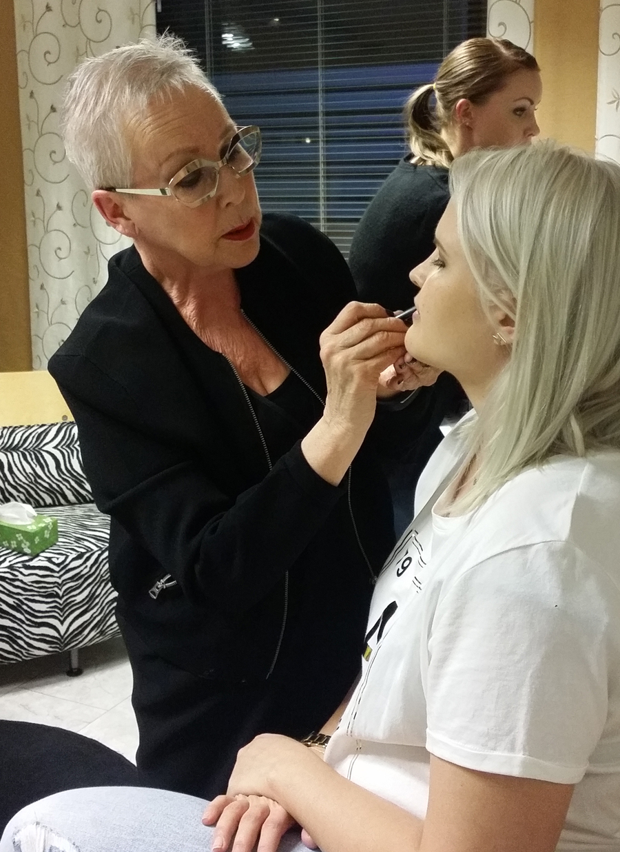Minun meikkauksen jälkeen paikalle saapui yllätysvieraana vielä Raili Hulkkonen! Tuntui, että olisi ollut niin hirveästi kaikkea kysyttävää, mutta ei sitten kuitenkaan siinä tilanteessa sitten tullut mieleen kuin muutama kysymys. Näin rautaiselta ammattilaiselta haluaisi imeä itseensä tietoa niin paljon kuin mahdollista. Kevään meikkitrendin vinkiksi saatiin käyttää luomiväreissä oranssia tai punaista. Itsehän kannatan pinkkiä ja punaista luomiväriä ja niitä voi käyttää meikissä myös tummemman luomivärin kaverina.