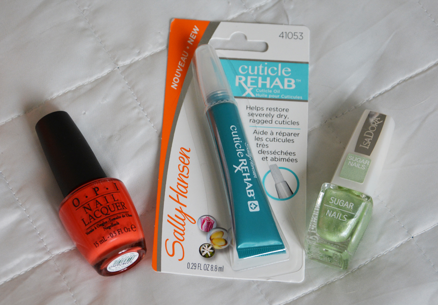 Opin My Paprika is Hotter than your, Sally Hansenin kynsinauhaöljy sekä IsaDoran SugarNails kynsilakka sävyssä Macaron.