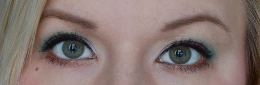 Harmittelin hiukan, ettei minulla ollut oikein kunnon punaista luomiväriä. Mutta toisaalta tällainen pehmeämpi meikkikin kyllä menettelee.