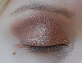 Sen jälkeen lisää luomen keskelle vaaleampaa kimaltavaa luomiväriä. Käytin samasta luomiväripaletista vaaleaa sävyä.