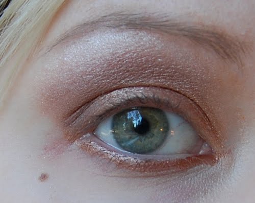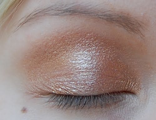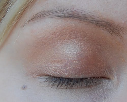 Sen jälkeen lisää luomen keskelle vaaleampaa kimaltavaa luomiväriä. Käytin samasta luomiväripaletista vaaleaa sävyä.
