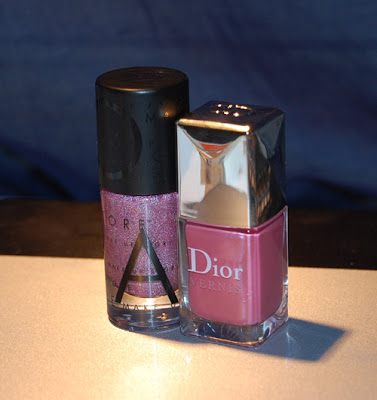 Ostin Make Up Storen myymälästä uuden kynsilakan ja luonnollisesti halusin kokeilla sitä mahdollisimman pian. Koska lakka oli kimaltelevaa ajattelin laittaa pohjalle toista väriä, jotta väri ei olisi liian läpikuultava. Niinpä pohjalle laitoin Diorin uutta kynsilakkaani, joka on esitelty edellisessä postauksessa.
