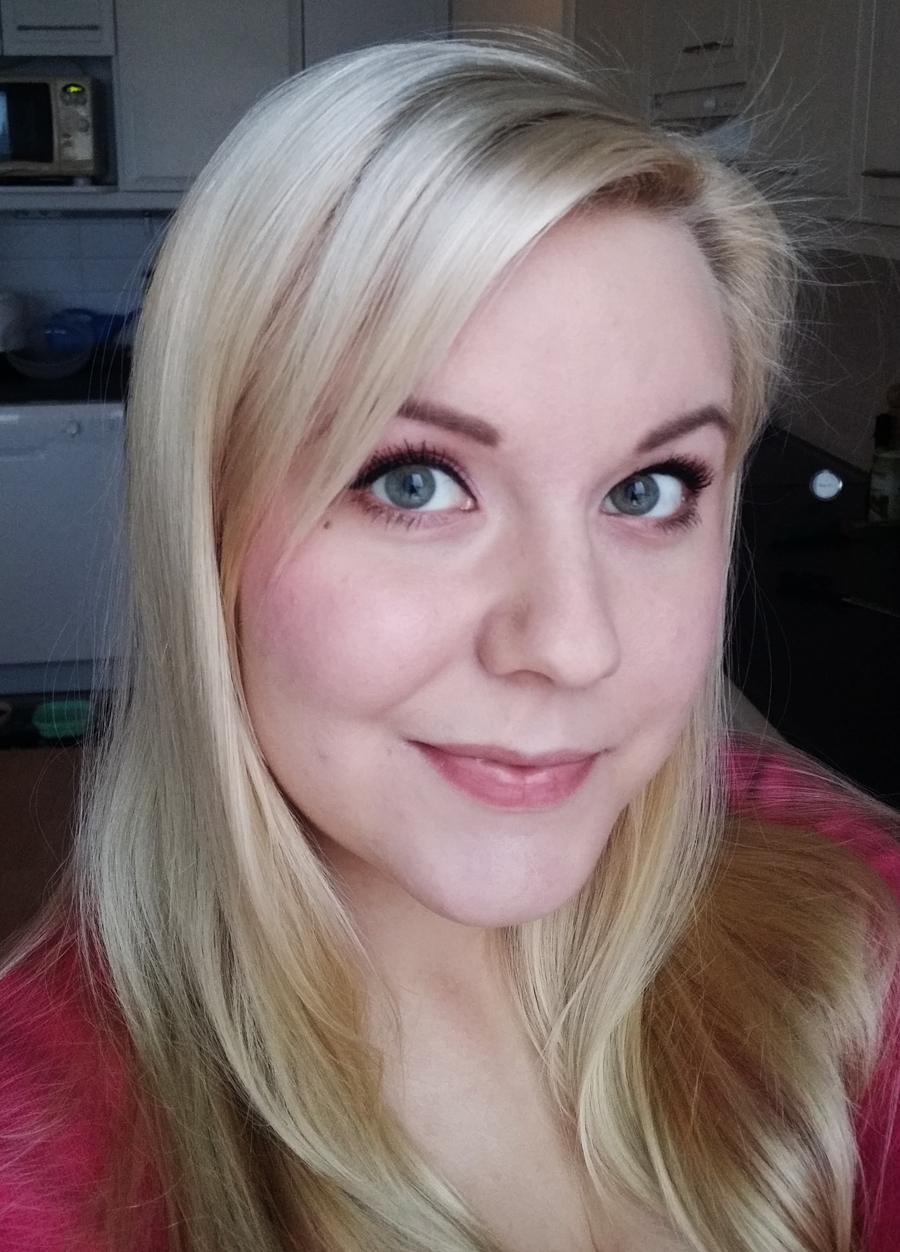 Sisänurkassa on Laveran vaaleanpunaista ja ulkonurkassa sitten tuota Inglotin pigmenttiä (nro 48). Lisäsin vielä luomen keskikohtaan hieman sitä kultaista Inglotin pigmenttiä(nro 63). Tykkäsin tuosta meikistä ihan valtavasti. Pigmentin pohjusteena käytin Too Faced Shadow Insurancea ilman puuterointia, jotta pigmentti nappaisi siihen hyvin. Jännää, miten tuo kirkas luonnovalo saa silmäni näyttämään harmailta, vaikka ne ovatkin vihertävät.