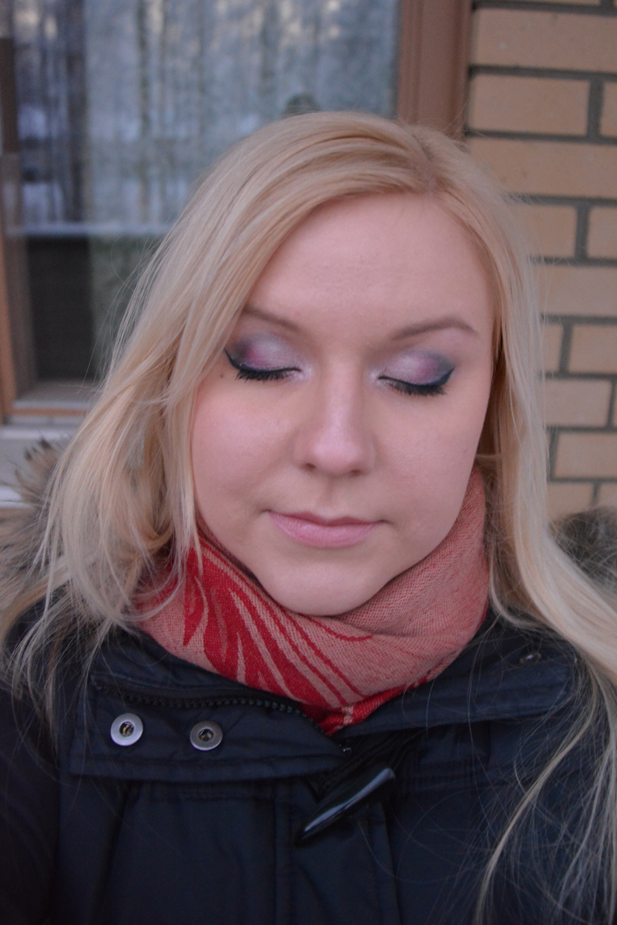 Miksi näin? Siksi, että toisilta meikkaajilta voi saada hyviä vinkkejä, joita ei itse ole älynnyt ollenkaan. Jokaisella on kuitenkin se oma käden jälkensä, joten halusin nähdä miten toinen ammattilainen meikkaisi minut. Monesti itse jämähtää siihen teitynlaiseen meikkityyliin, jolloin ei edes osaa enää tehdä muuta. Tein hommasta vielä vähän haasteellisemman, sillä menin meikkaukseen ilman omaa meikkiä, jolloin tekijällä ei ole aavistustakaan normaalista meikkaustyylistäni. Ikäänkuin jo allergiani ei olisi luonut tarpeeksi haastetta. Ja lopputulos?