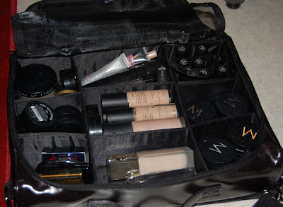 Päivä oli pitkä, mutta kuitenkin myös jännittävä, sillä niin lyhyessä ajassa tuli monia erilaisia kasvoja meikattavaksi. Muknan minulla oli tottakai meikkipakkini ja siveltimet. Voisinkin tähän lisäksi laittaa kuvan meikkipakistani, jonka sain koulusta. Meikkipakki kuului koulu hintaan ja se sisälsi myös jonkun verran Make up storen tuotteita. Olen kyllä ostanut paljon lisää paljonkin, joten siksi pakkini on niin täynnä. Lisäksi kuvassa on vain puolet pakistani, sillä sen saa jaettua kahteen osaan. En kuitenkaan vielä ole nähnyt tarpeelliseksi kuljettaa koko pakkia.
