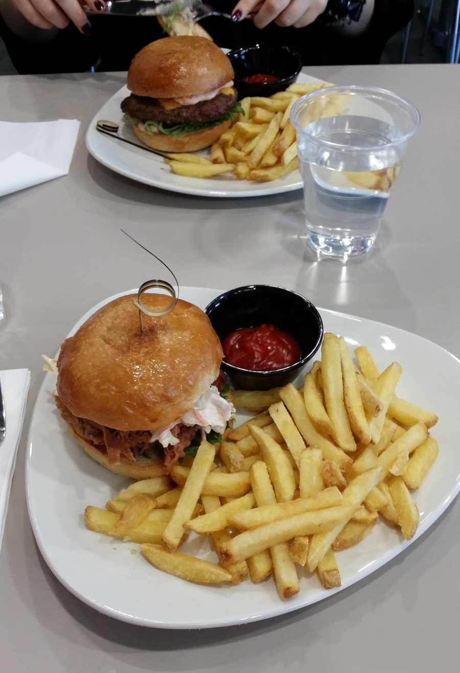 Perjantaina kiersin messuja aluksi pääasiassa yksin. Syömässä kävin blogikollegoiden kanssa Balcony ravintolassa, joka sijaitsi messualueen takana parvella. Hämmästyttiin kovasti, kun tilaamamme hampparit saapuivat uskomattoman nopeasti. Sunnuntaina käytiin Wint It Up -blogin Martinan kanssa testaamassa samainen ravintola ja tuolloin saatiin hampparit kolmessa minuutissa! En edes tiedä, miten se on mahdollista ja olen sentään ollut hampurilaisravintolassa aikaisemmin töissä. Mutta hamppari oli ainakin todella hyvää.