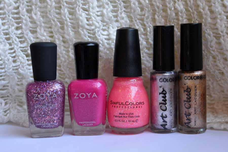 Kaksi Zoyan lakkaa, yksi Sinful Colors sekä kaksi ColorClub koristelulakkaa.
