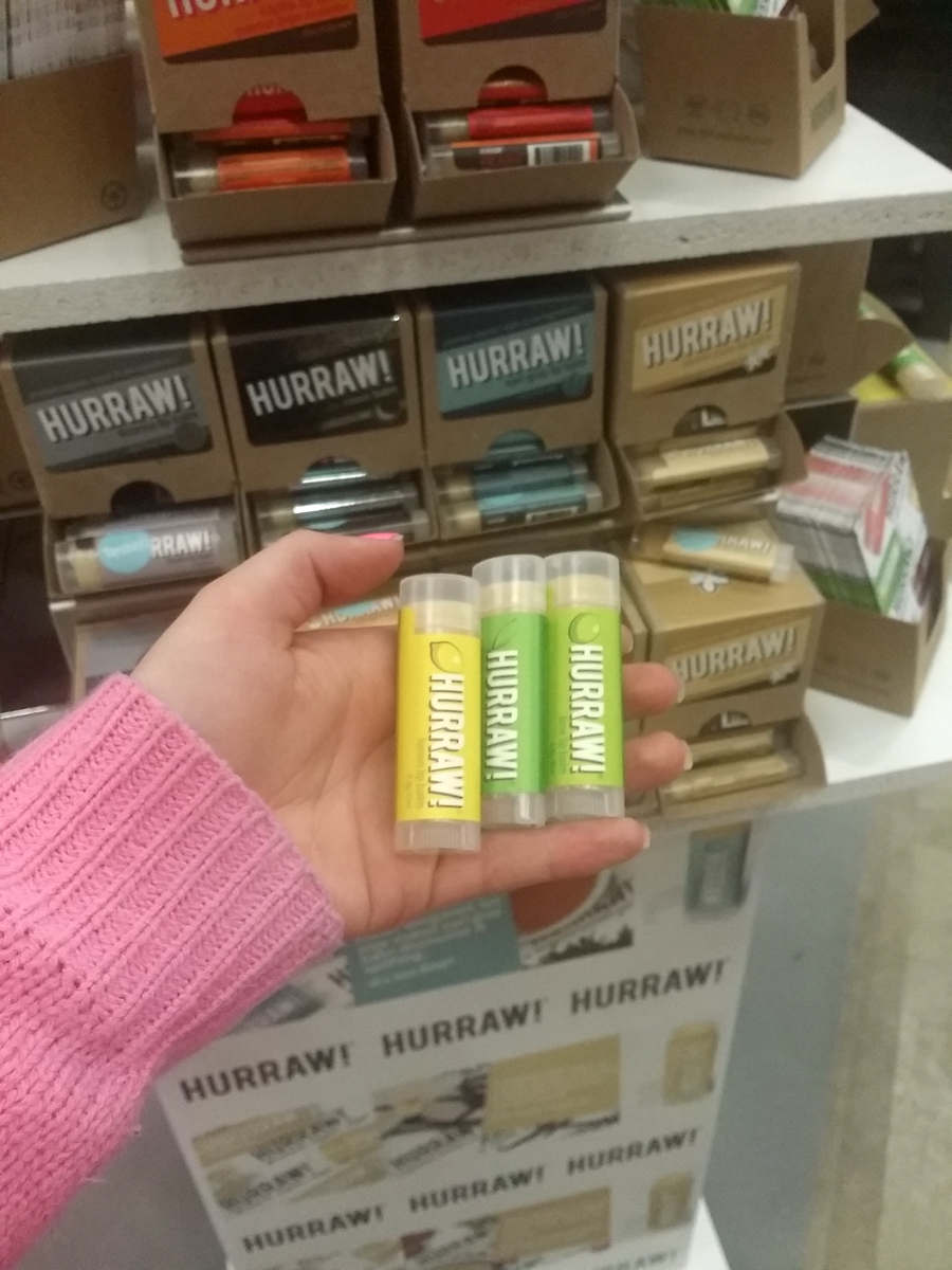 Kuvassa Hurraw! -huulirasvat sekä Laveran bloggaajalahja