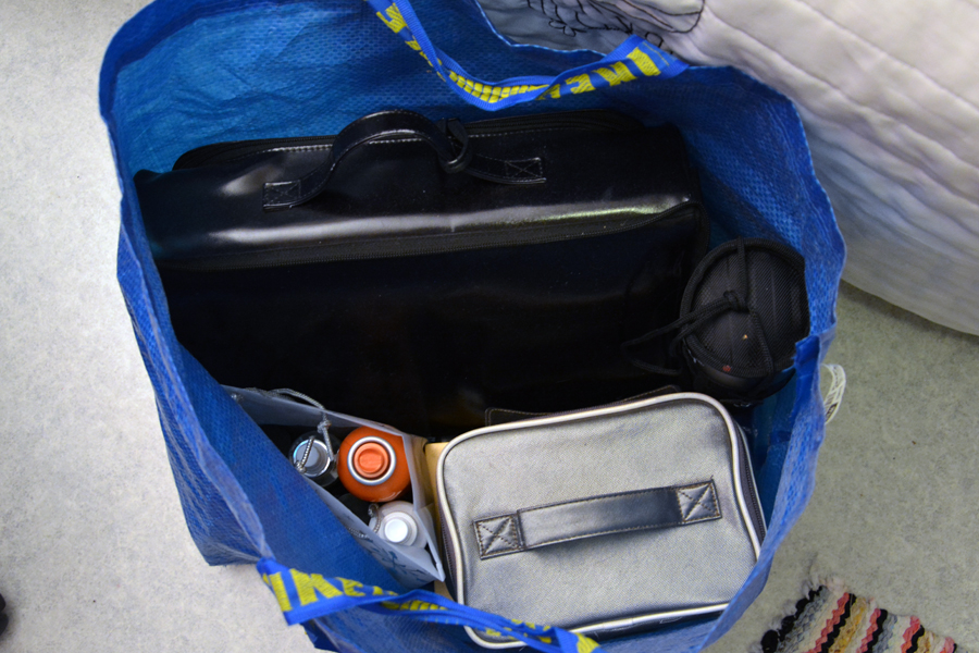 Mukanani kulkee siis Make Up Storen iso meikkipakki ja tuo Sensain meikkipussi, Duroy sivellinkotelo, muutama paletti sekä pussillinen irtotavaraa. Kaikki on kulkenut kätevästi Ikean kassissa ja voin kertoa että tuo kassi painaa ihan älyttömästi.