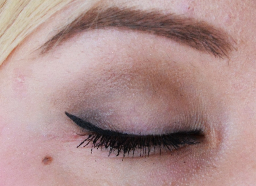 Meikki on hyvin yksinkertainen. Liikkuvalla luomella on Too Faced Mattanude luomiväri Heaven. Luomivako on varjostettu Make Up Storen Smogilla ja Ghettolla. Ulkonurkaan lisäsin vielä aavistuksen Make Up Storen mattamustaa Pollution luomiväriä.