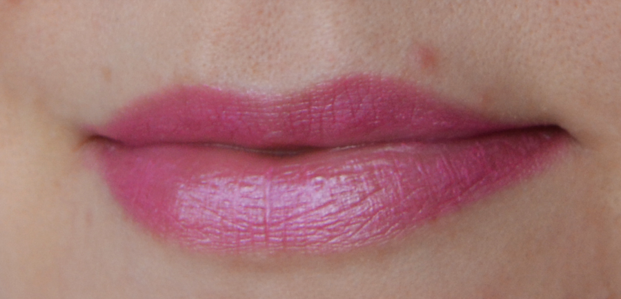 Huulipunan ostin siksi, että minulla on projektina etsiä hyvin sellaista violettiin taittavaa huulipunaa. Tämä näytti enemmän violetilta kuvastossa, mutta valitettavasti olikin melko punainen. Lisäksi väri on melko läpikuultava, joten täytyy kokeilla myös kunno pohjusteen kanssa, että näyttäisikö silloin enemmän violetilta. Koostumus oli kuitenkin ihanan pehmeä ja aika voidemainen. Jos ei tule itsellä käytettyä niin tiedän kyllä tälle sopivan omistajan!