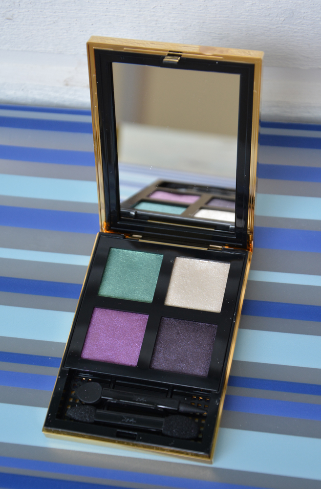 YSL:n Pure Chromatics luomiväriä voi käyttää joko kuivana ja märkänä. Minulla on aikaisemminkin ollut YSL:n luomivärejä ja huulipuna, joten tiesin että luomiväreissä on hyvät pigmentit. Värit ovat yllätys yllätys, kimaltavia/metallinhohtoisia. En vaan voi sille mitään et kaikki kimaltava oikein vetää puoleensa. Tuo vihreä ei ehkä ole ihan minun väri, mutta muut vaikutti oikein kivalle. Metallinhohto myös auttaa siinä, ettei meikistä saa mustelman näköistä, niinkuin joskus tuollaisen tummanvioletin kanssa voi käydä. Mukana oli myös kaksi eri aplikaattoria, kuivaan käyttöön, sekä tuollainen kumisen tuntuinen märkään käyttöön.