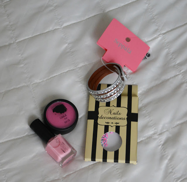 Seppälästä rannekorun, Hair chalkia ja kynsikoriste perhosia. GinaTricotista tuo himoitsemani kynsilakka jonka näin Martinan Blogissa: Wind it up. Käytiin kyllä monissa muissakin liikkeissä ja ostin vielä viimeisiä joululahjoja sieltä muille. Tää lienee mun joululahja itselleni (ja se elfin tilaus, jonka tein jo aikaisemmin).