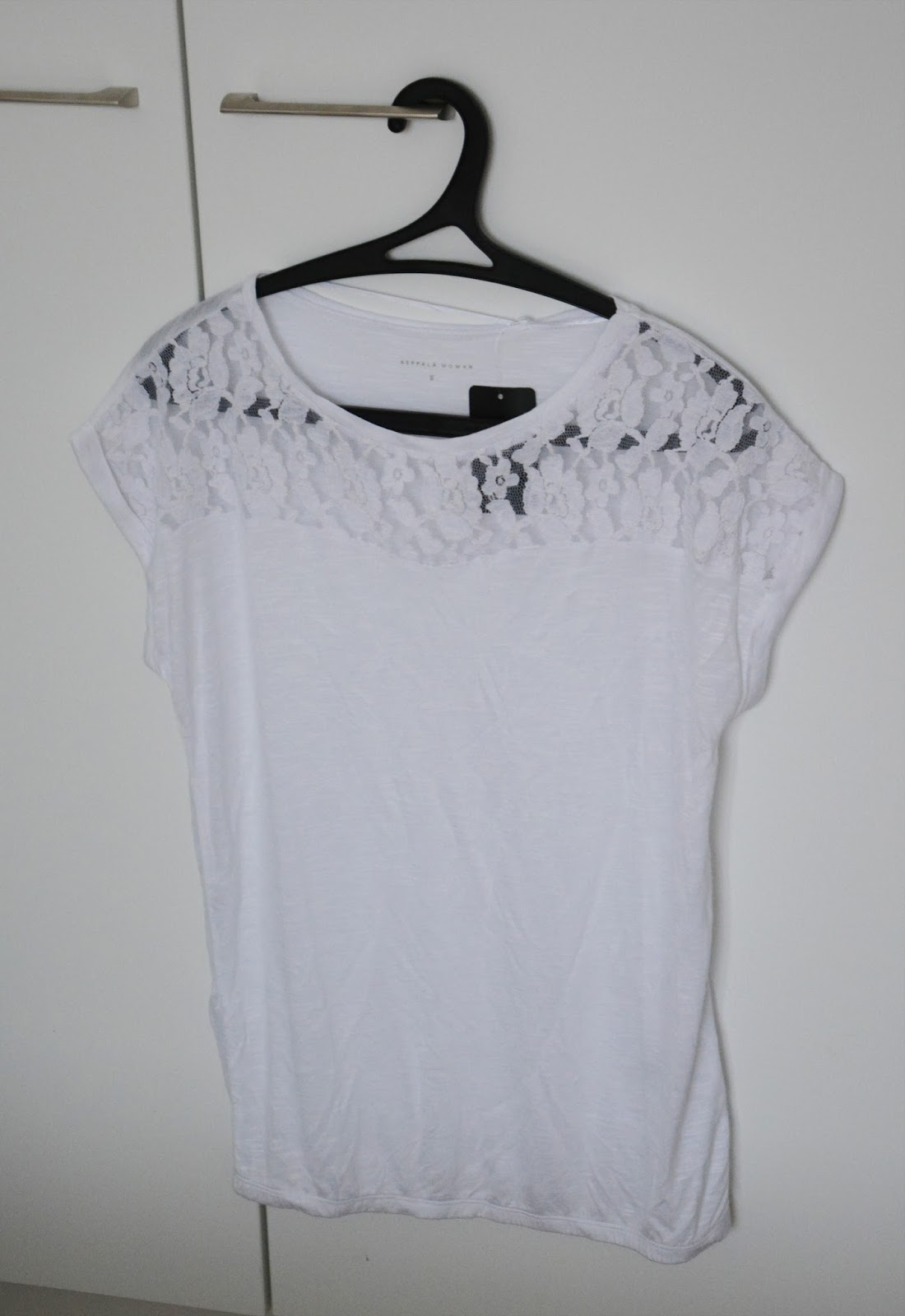 Valkoinen (No joko nyt taas) t-paita pitsiyläosalla. Seppälästä tämäkin. Normaalisti 14,95, mutta -40% myös tästäkin tuotteesta!