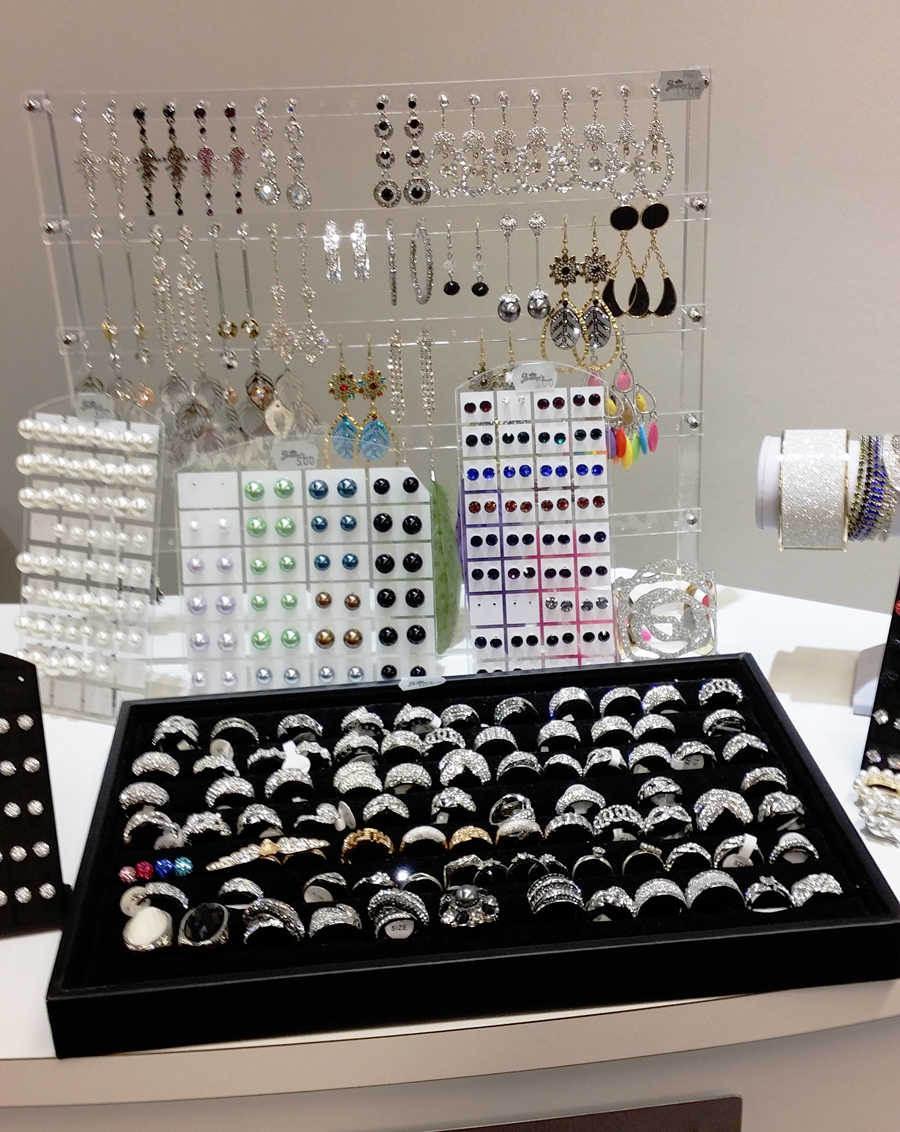 Ja koruja! Niin paljon blingiä. Sormukset on 10€ ja korvikset 5-12€.