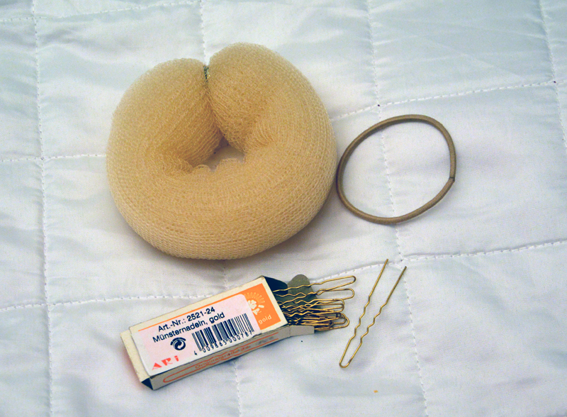 Ensinnäkin tarvitset valkin. Kannattaa valita valkin koko hiuksien pituuden mukaan. Pitkille hiuksille suosittelen tuota nepparilla aukeavaa paksua valkkia ja lyhyille hiuksille sitten sellaista mallia, joka on valmiiksi donitsinmuodossa, eli siinä ei ole nepparia. Omani olen ostanu Glitteristä ja sieltä löytyi muistaakseni 3 eri kokoa erilaisille hiuksille. Myyjältä voi pyytää apua, jos ei ole varma siitä minkäkokoinen valkki on omille hiuksille sopiva.
