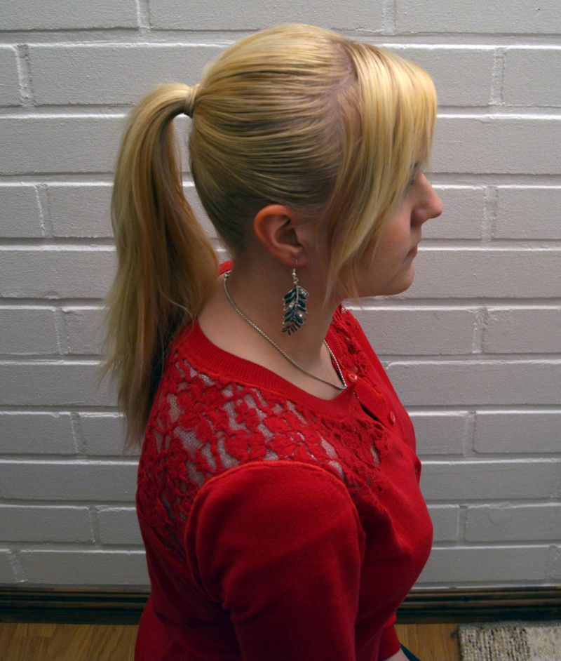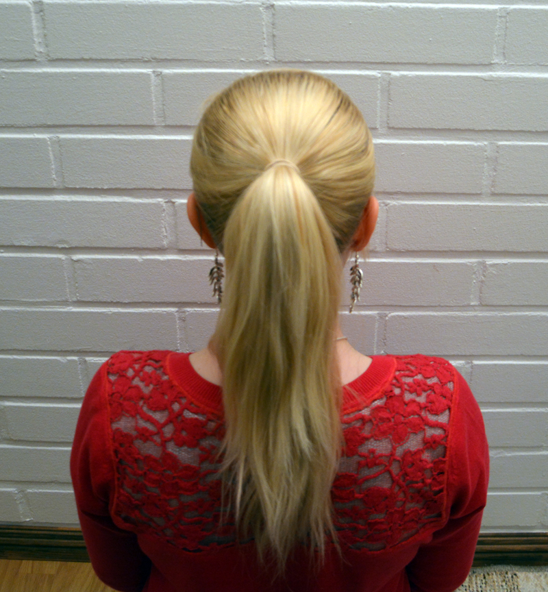 Tupeeraa poninhäntää vähän. Jos sinulla on hyvin liukkaat hiukset kannattaa tupeerata vähän enemmän. Kannattaa jättää kuitenkin poninhännän alaosa melko sileäksi, sillä se tulee olemaan valkissa näkyvillä.